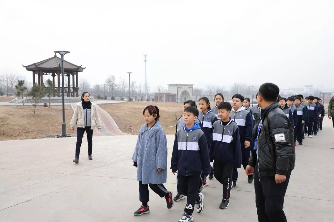 齐添新绿,共创绿色校园。植树团队由4-6年级36名同学组成,他们迈着整齐有序的步伐向我校的种植研学基地进发。